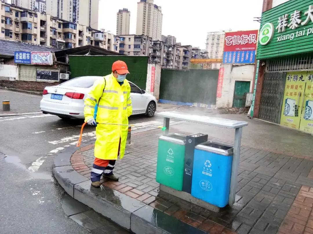 疫情就是命令,防控就是责任。为不让疫情随垃圾扩散,李文庆一直坚守工作岗位,积极做好防控一线保洁工作,在疫情面前,他依然奋斗在工作岗位,毫不退缩,坚守着工作岗位,全力以赴抓好新型冠状病毒防控工作,为打赢这场没有硝烟的战争贡献着自己的一份力量。李文庆是秭归屈原镇人,本想春节前回老家过年,但接到疫情防控命令后,决定留在宜昌,加入到疫情防控工作中。新冠肺炎疫情发生以后,李文庆的工作任务在原有的保洁、清洗环卫设施和小区应急的基础上增加了每日消毒的环节。每天早上出门,背着沉甸甸的装满药水的喷雾器,对东山大道到夷陵路、合益路街面上的216个垃圾桶和184个果皮箱以及小区进出口通道、小区内容器、超市门口、药房门口、菜市场周边等进行全面的消毒杀菌,每天2次。李文庆坚定地说“医生在前线战斗,我们在路上、在小区战斗,要坚决阻断病毒在马路、果皮箱、通道、菜市场传播,为城市筑起一道抵御病毒的屏障。”2月5日,宜昌城区启动全城大消毒工作,李文庆也早早的做好消毒前期准备工作,和队友们一起加入到消毒工作中来,从晚上9点一直忙到凌晨4点多,回家眯3个小时,不到7点就又出来工作了。疫情期间,李文庆每天工作14个小时以上,他用实际行动为疫情防控作出了应有的贡献,用坚守和不畏惧温暖着这座城市,充分诠释了“城市美容师”应有的职业精神。