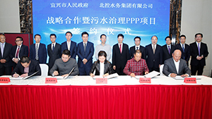 In recent years, BEWG and Yixing Municipal Government have conducted in-depth cooperation in ecological construction, photovoltaic industry and environmental protection equipment etc. 10 urban sewage treatment plants in Yixing City are run by BEWG in the mode of PPP. BEWG successfully signed the contract on PPP of rural pollution control and urban-rural sewage pipe network in Yixing and the total investment amount reached 6.7 billion yuan.This project is the largest distributed pollution control project and the pipe network asset project to vitalize the stock in the country, actually realizes the plant network integration and urban-rural integration of BEWG in Yixing, and provide the comprehensive full-industry chain service for terminal peasant household, pipe network and water works.