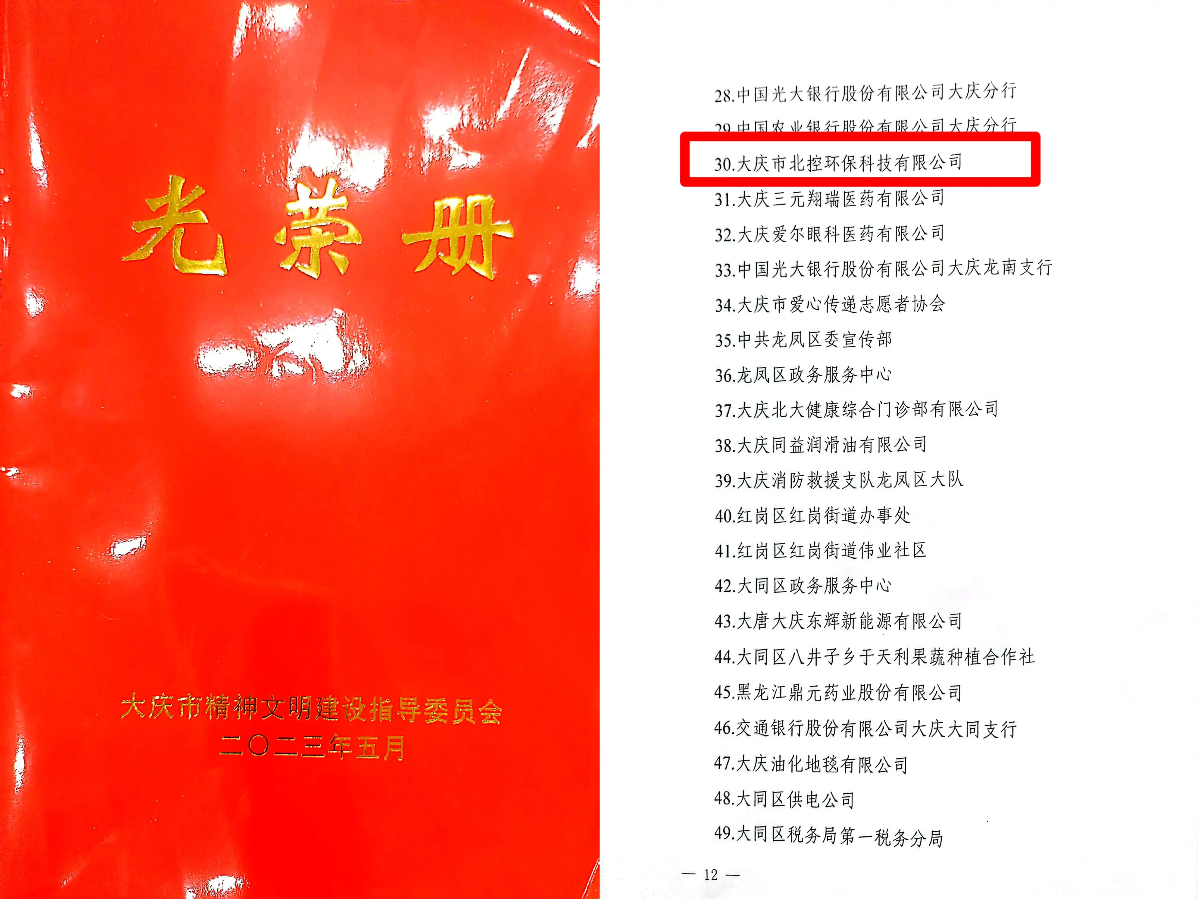 大庆市北控环保科技有限公司喜获“市级文明单位”荣誉 2023-09-22