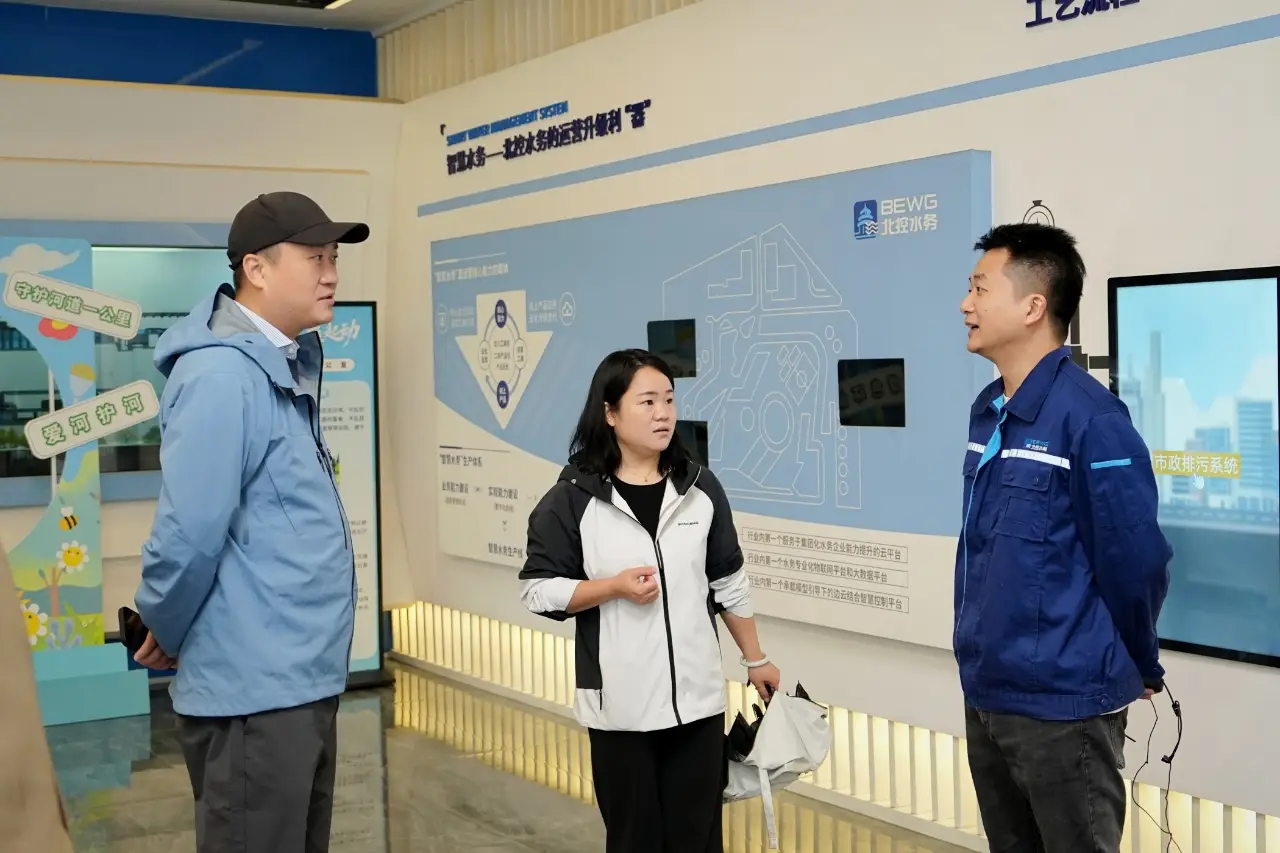 随后作为活动的重要环节,龙泉北控为参访团精心组织了一场沉浸式“水净化探索之旅”。在环保科普展厅,工作人员通过工艺模型、图文展板和多媒体互动系统,生动讲解了污水处理全流程及其对城市生态和河道健康的重要意义,帮助参访团建立起系统的水环境保护知识框架。在智慧中控室,通过大屏幕实时观测全厂运行参数、工艺流程及关键环节监控画面,参访团直观了解数字化系统在污水处理过程中的精准调度与高效管控能力,深切感受到现代环保设施所蕴含的科技力量。