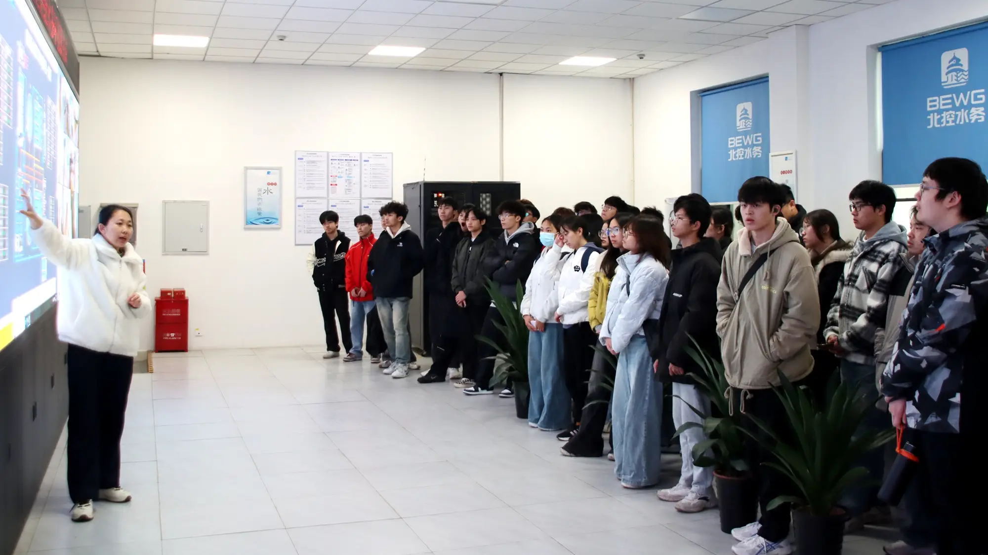 在厂区专业技术人员的引导下,师生们依次参观了中控室、预处理单元、生化池、二沉池、高效沉淀池、紫外消毒间等核心工艺环节,实地观摩了污水处理的全过程,对现代化污水处理厂的运行有了直观认识。
